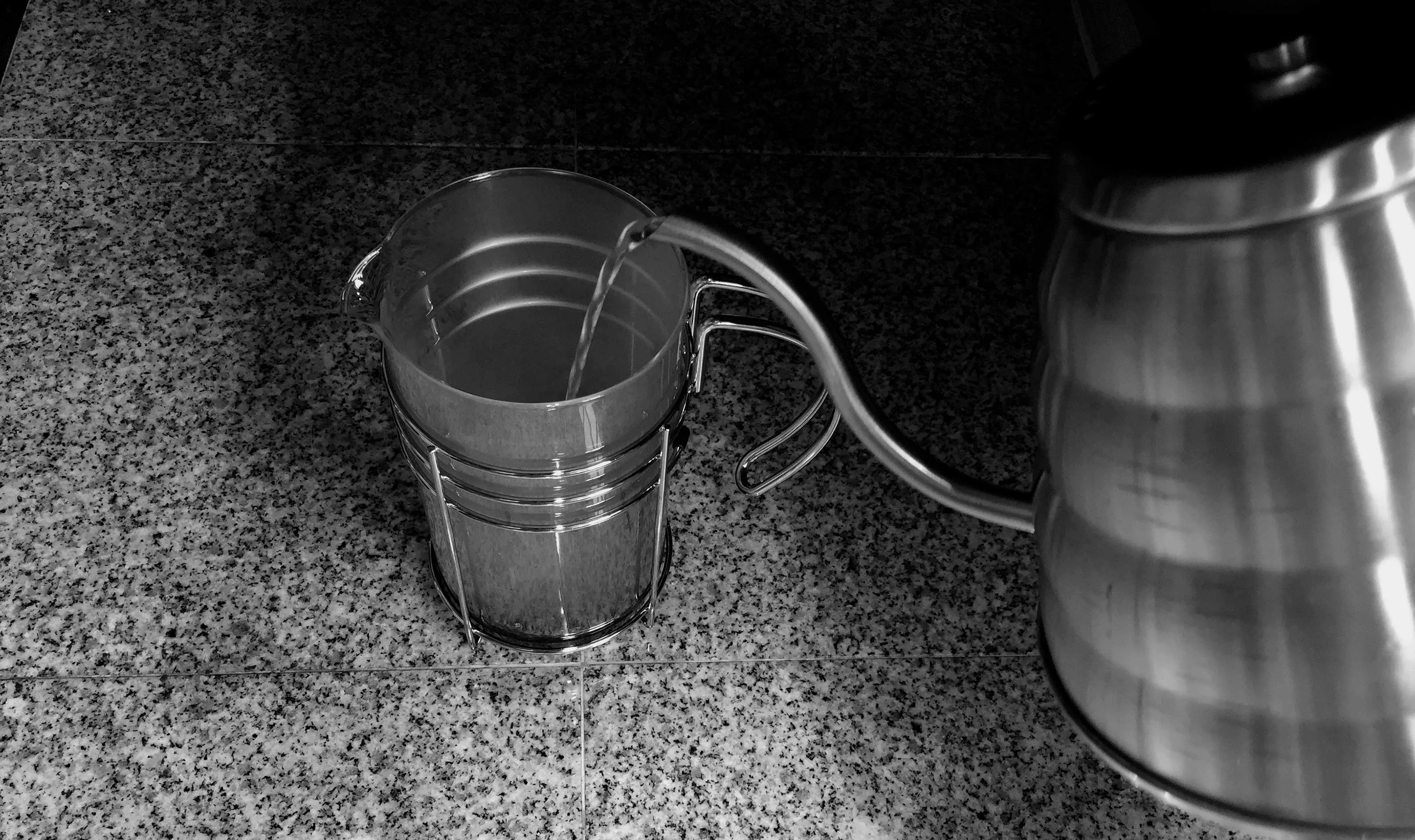 After blooming has occurred, go ahead and pour in your remaining water in slow counter-clockwise circles. Ensure that at least an inch of free space between the water level and the top of your press glass exists.